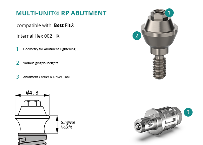 Multi-Unit® RP Abutment compatible with Best Fit® Internal Hex 002 HXI