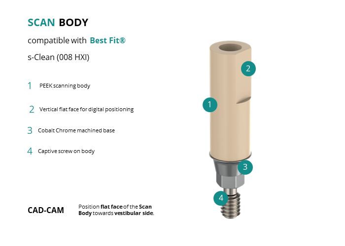 Scan Body compatible with Best Fit® s-Clean (008 HXI)