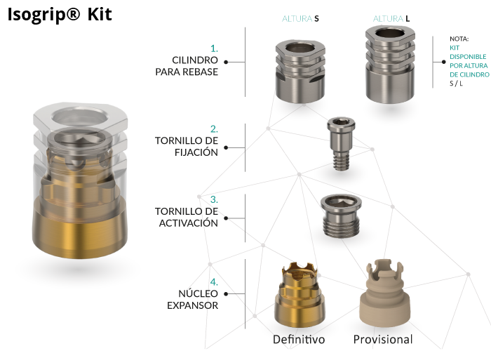 Thanks to the Isogrip® Kit, we can perform immediate loading with any type of implant on an Multi-Unit® abutment, reducing the time it takes to obtain a screw-retained denture on implants.