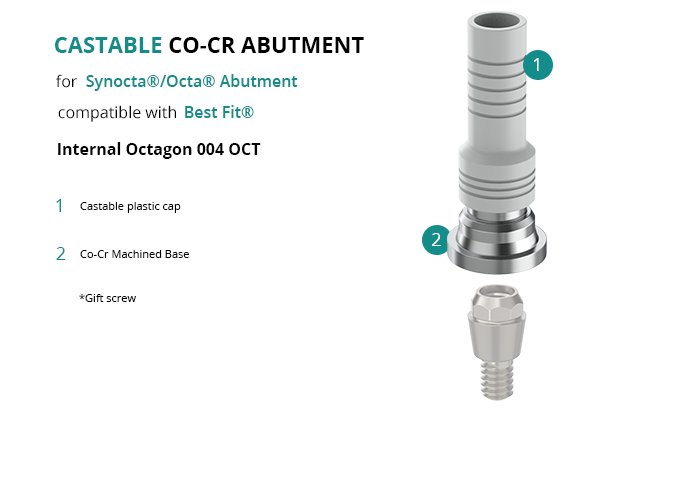 Castable Abutment with Co-Cr Base for Synocta®/Octa® Abutment compatible with Best Fit® Internal Octagon 004 OCT