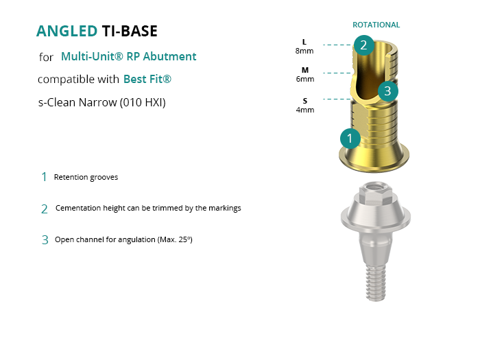 Angled Titanium Base for Multi-Unit® RP Abutment compatible with Best Fit® s-Clean Narrow (010 HXI)