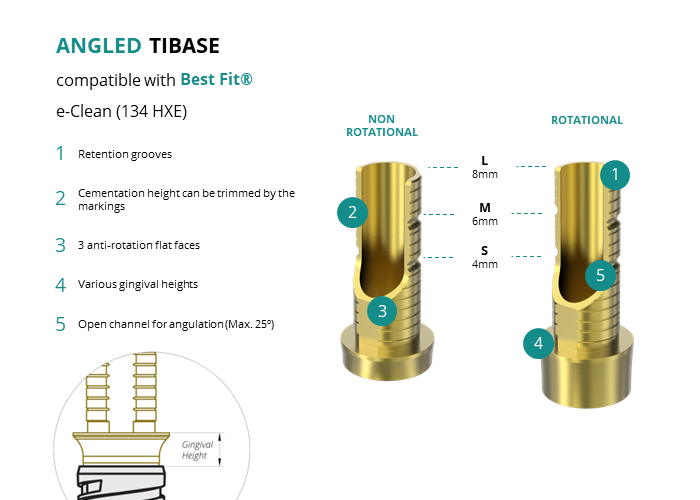 Angled Titanium Base compatible with Best Fit® e-Clean (134 HXE)