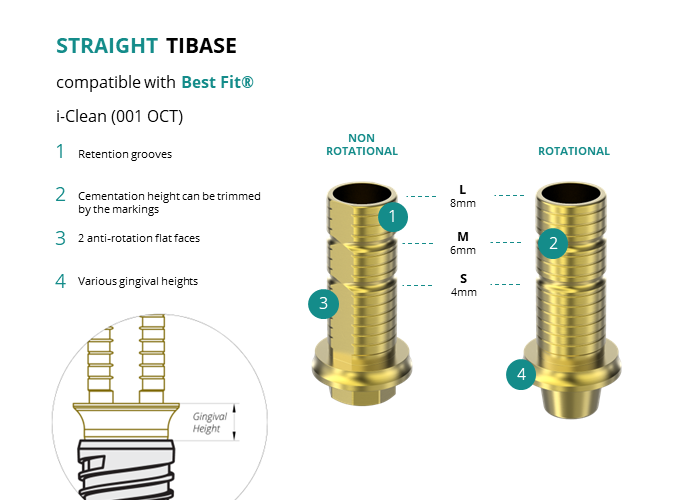 Titanium Straight Base compatible with Best Fit® i-Clean (001 OCT)