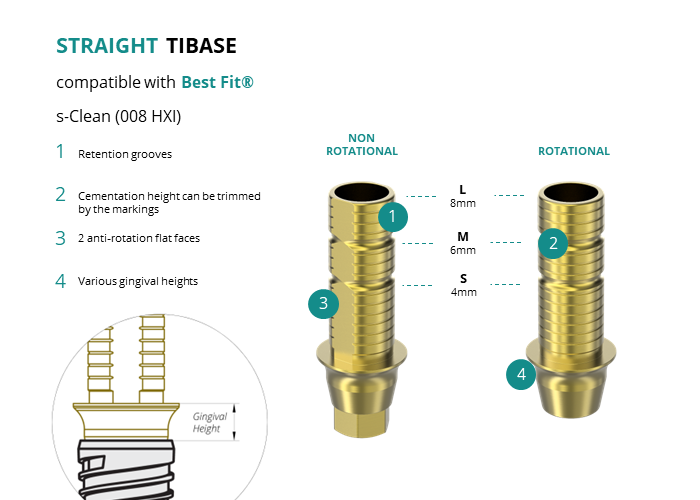 Titanium Straight Base compatible with Best Fit® s-Clean (008 HXI)
