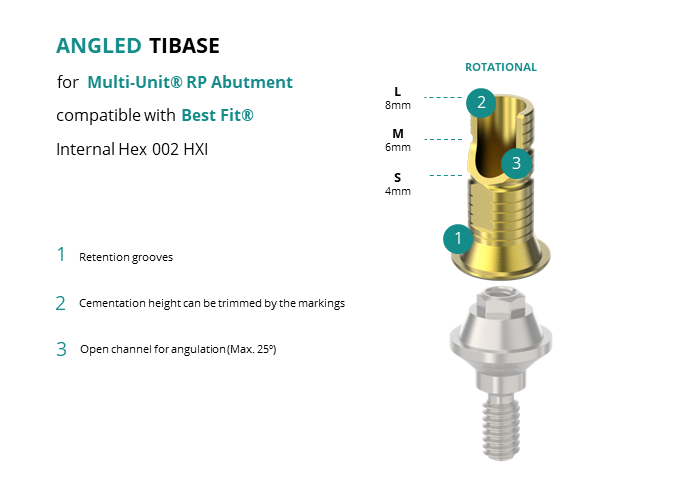 Angled Titanium Base for Multi-Unit® RP Abutment compatible with Best Fit® Internal Hex 002 HXI
