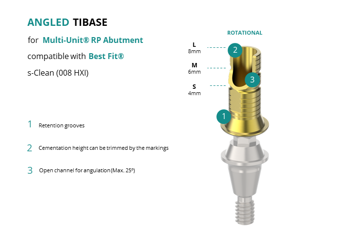 Angled Titanium Base for Multi-Unit® RP Abutment compatible with Best Fit® s-Clean (008 HXI)
