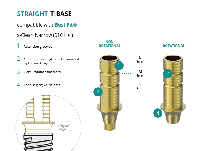Titanium Straight Base compatible with Best Fit® s-Clean Narrow (010 HXI)