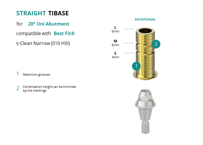 Titanium Straight Base for 20º Uni Abutment compatible with Best Fit® s-Clean Narrow (010 HXI)