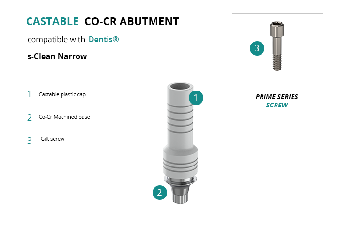 Castable Abutment with Co-Cr Base compatible with Dentis® s-Clean Narrow