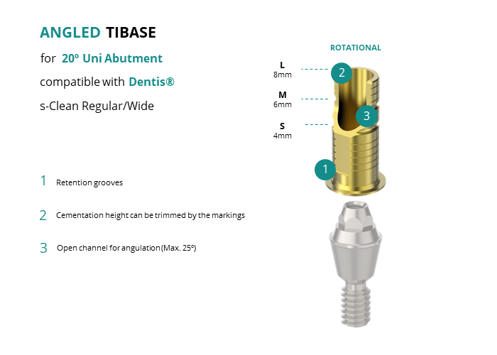Angled Titanium Base for 20º Uni Abutment compatible with Dentis® s-Clean Regular/Wide