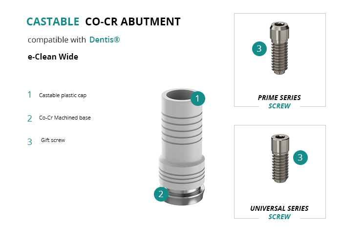 Castable Abutment with Co-Cr Base compatible with Dentis® e-Clean Wide