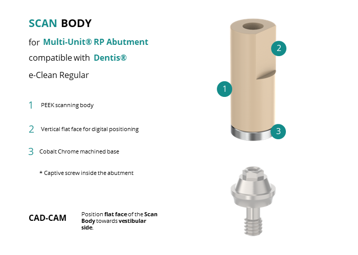 Scan Body for Multi-Unit® RP Abutment compatible with Dentis® e-Clean Regular