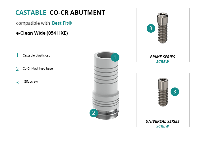 Castable Abutment with Co-Cr Base compatible with Best Fit® e-Clean Wide (054 HXE)