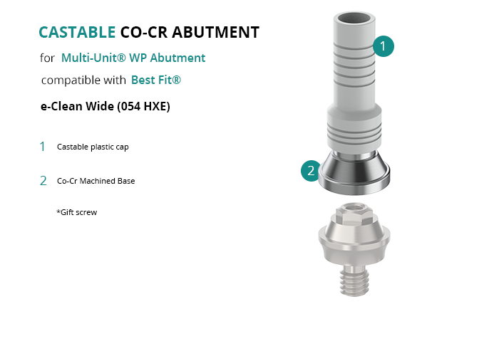 Castable Abutment with Co-Cr Base for Multi-Unit® WP Abutment compatible with Best Fit® e-Clean Wide (054 HXE)
