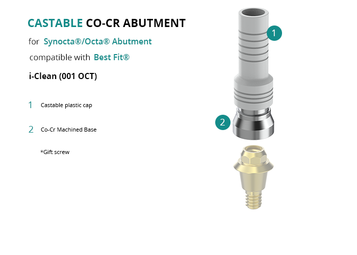 Castable Abutment with Co-Cr Base for Synocta®/Octa® Abutment compatible with Best Fit® i-Clean (001 OCT)