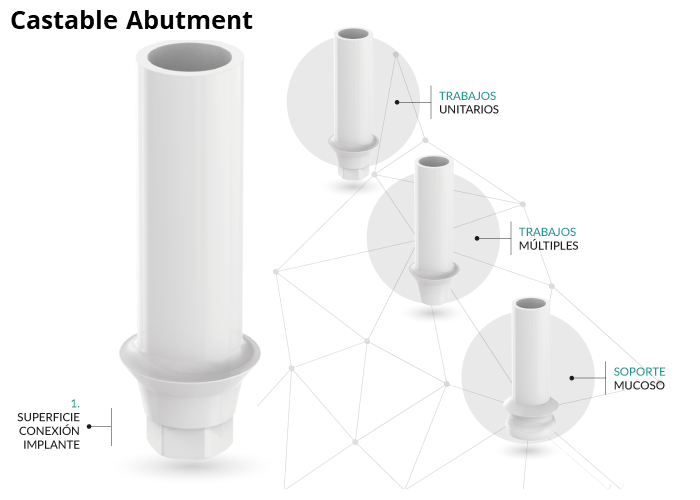 On the other hand, the connection of the Castable Abutment with the prosthetic structure is made through a casting process.