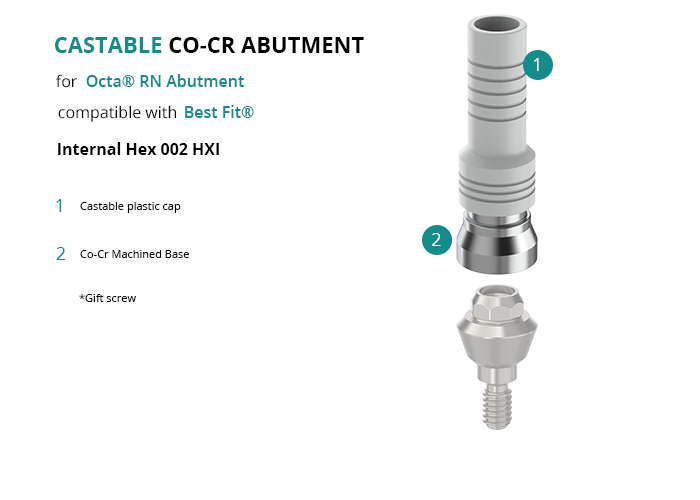 Castable Abutment with Co-Cr Base for Octa® RN Abutment compatible with Best Fit® Internal Hex 002 HXI