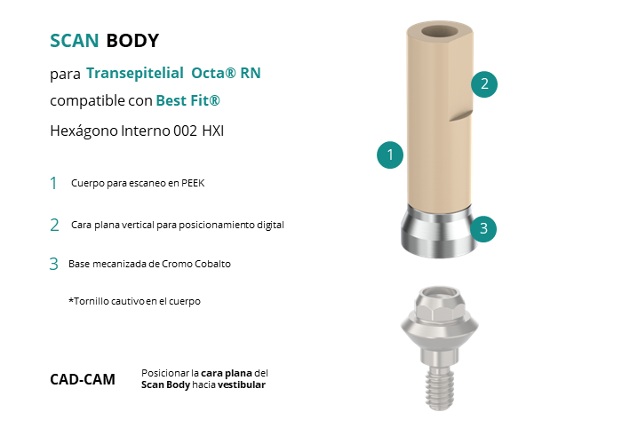 Scan Body para Transepitelial Octa® RN compatible con Best Fit® Hexágono Interno 002 HXI
