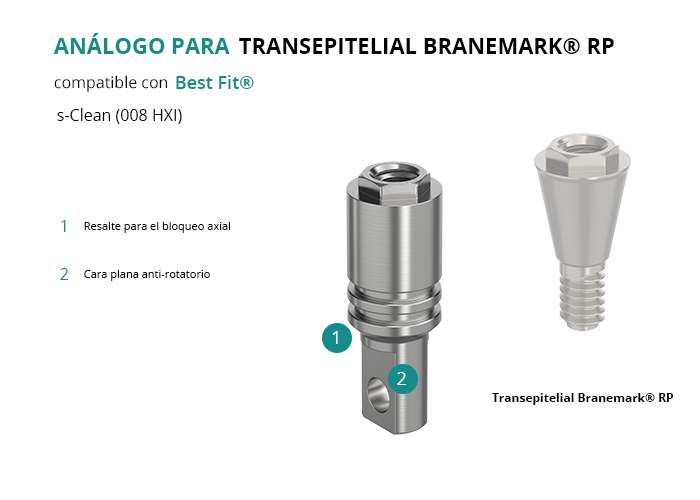 Análogo para Transepitelial Branemark® RP Compatible con Best Fit® s-Clean (008 HXI)