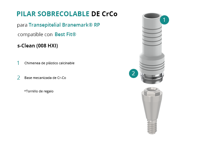 Pilar Sobrecolable de CrCo para Transepitelial Branemark® RP compatible con Best Fit® s-Clean (008 HXI)