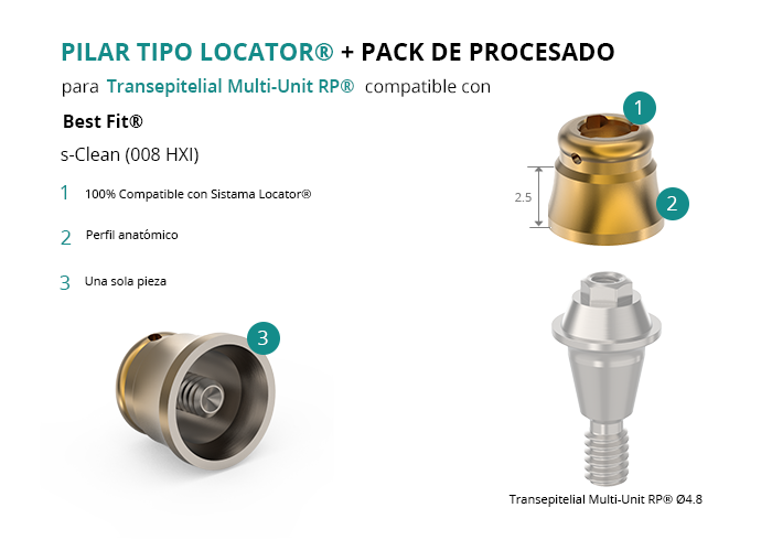 Pilar tipo Locator® para pilar Multi-Unit® RP compatible con Best Fit® s-Clean (008 HXI)