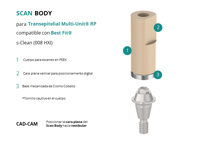 Scan Body para Transepitelial Multi-Unit® RP compatible con Best Fit® s-Clean (008 HXI)