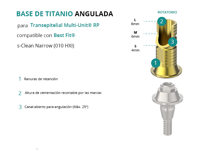 Base de Titanio Angulada para Transepitelial Multi-Unit® RP compatible con Best Fit® s-Clean Narrow (010 HXI)