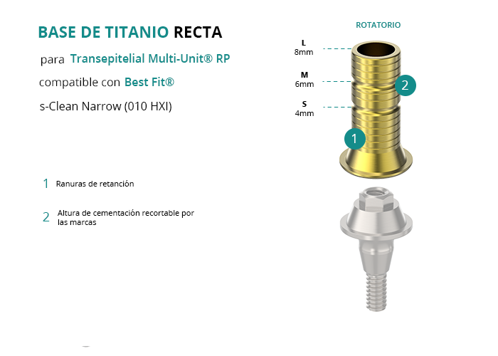 Base de Titanio Recta para Transepitelial Multi-Unit® RP compatible con Best Fit® s-Clean Narrow (010 HXI)