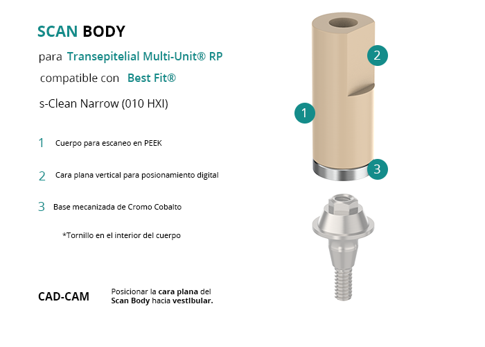 Scan Body para Transepitelial Multi-Unit® RP compatible con Best Fit® s-Clean Narrow (010 HXI)