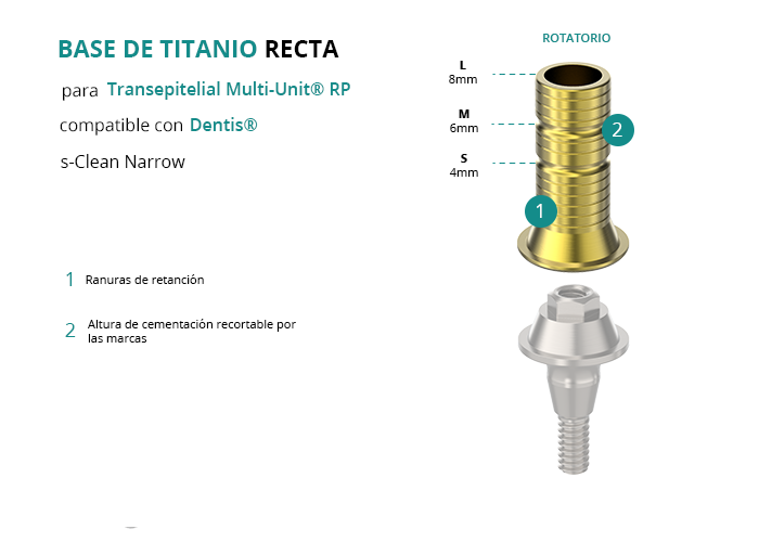Base de Titanio Recta para Transepitelial Multi-Unit® RP compatible con Dentis® s-Clean Narrow