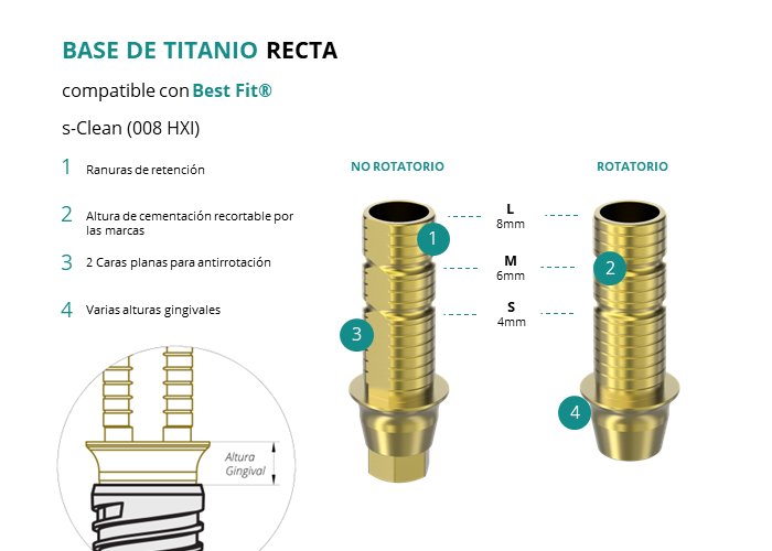 Base de Titanio Recta compatible con Best Fit® s-Clean (008 HXI)