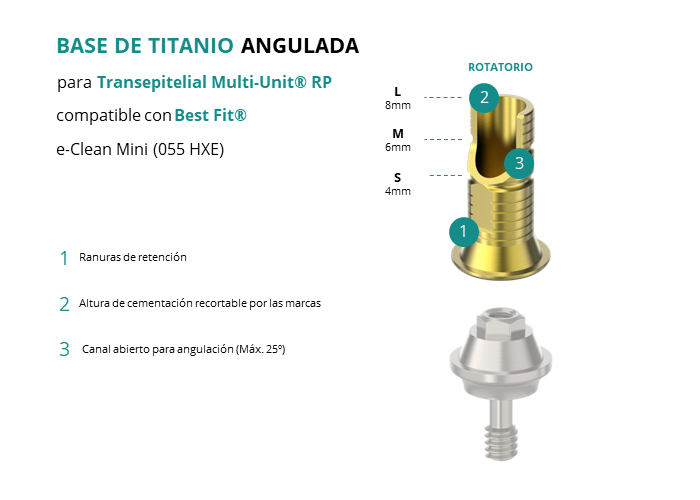 Base de Titanio Angulada para Transepitelial Multi-Unit® RP compatible con Best Fit® e-Clean Mini (055 HXE)