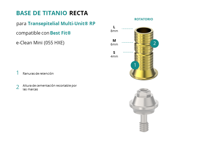 Base de Titanio Recta para Transepitelial Multi-Unit® RP compatible con Best Fit® e-Clean Mini (055 HXE)