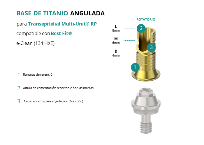 Base de Titanio Angulada para Transepitelial Multi-Unit® RP compatible con Best Fit® e-Clean (134 HXE)