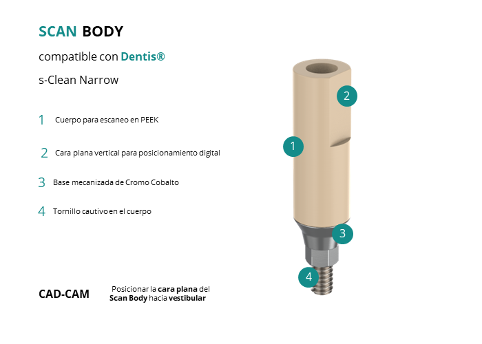 Scan Body compatible con Dentis® s-Clean Narrow