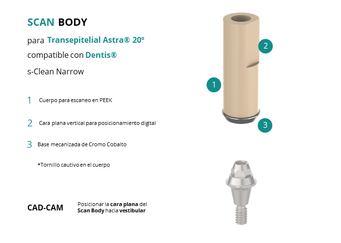 Scan Body para Transepitelial Astra® 20� compatible con Dentis® s-Clean Narrow
