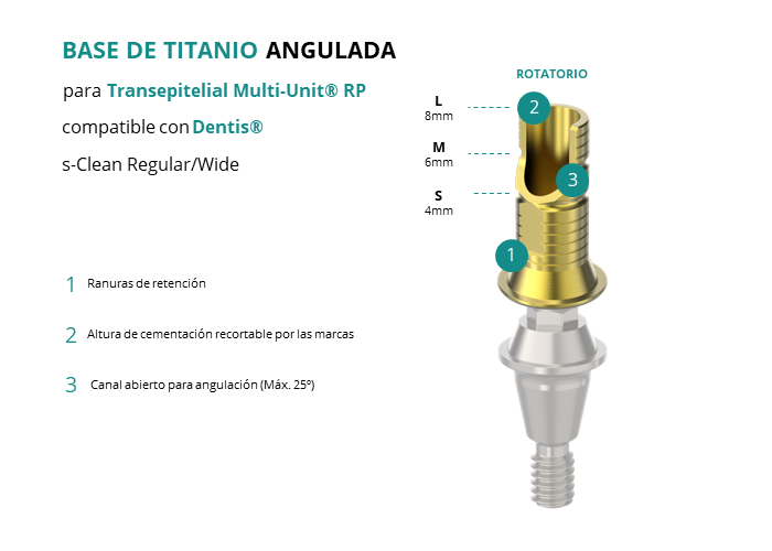 Base de Titanio Angulada para Transepitelial Multi-Unit® RP compatible con Dentis® s-Clean Regular/Wide
