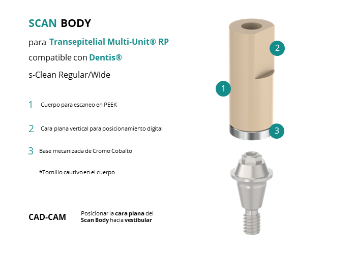 Scan Body para Transepitelial Multi-Unit® RP compatible con Dentis® s-Clean Regular/Wide