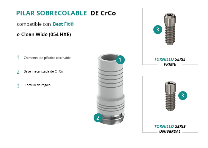 Pilar Sobrecolable de CrCo compatible con Best Fit® e-Clean Wide (054 HXE)