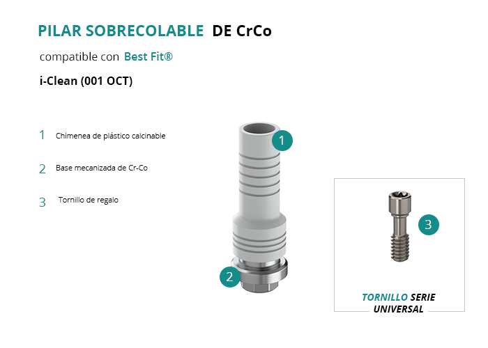 Pilar Sobrecolable de CrCo compatible con Best Fit® i-Clean (001 OCT)