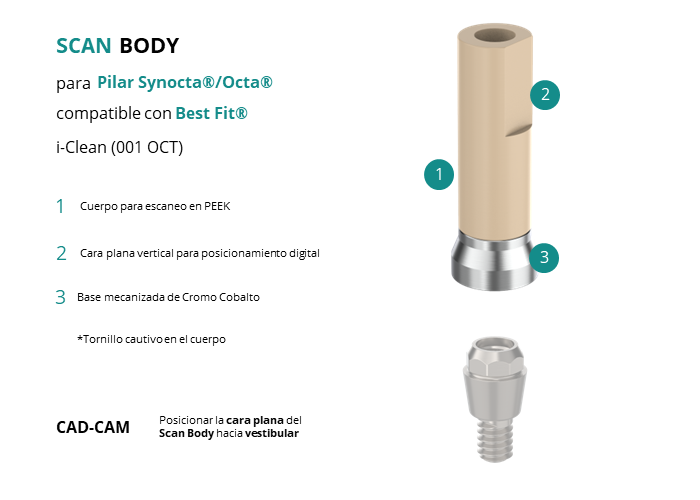 Scan Body para Pilar Synocta®/Octa® compatible con Best Fit® i-Clean (001 OCT)