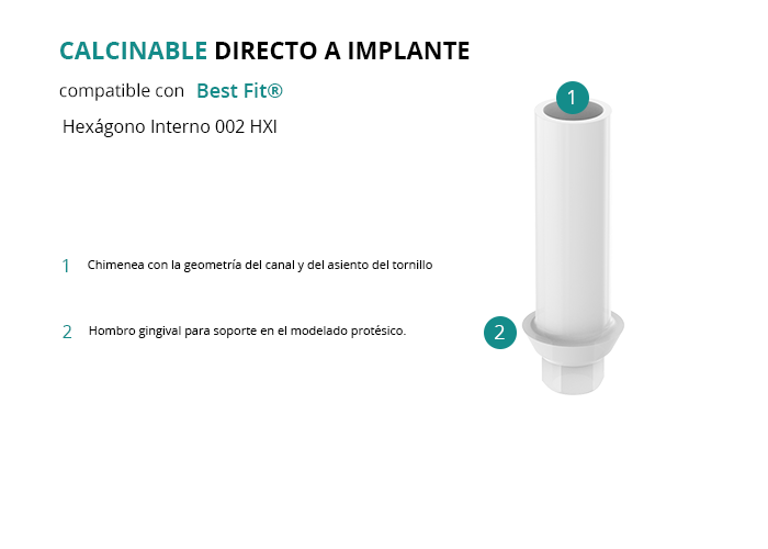Calcinable Directo a Implante Compatible con Best Fit® Hexágono Interno 002 HXI