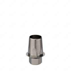 Presenta seis caras planas que aseguran la anti-rotación de la Base de Titanio Cónica dentro de la estructura protésica. Están angularmente orientadas con la conexión del implante y con la cara plana del scan body. - Hombro gingival, tiene una altura de 0.5mm aproximadamente con un acabado superficial micro-pulido que facilita el crecimiento perimetral de la mucosa gingival. Para los casos donde el implante está muy sumergido tenemos disponibles otras alturas gingivales entre 0 y 4.5mm .