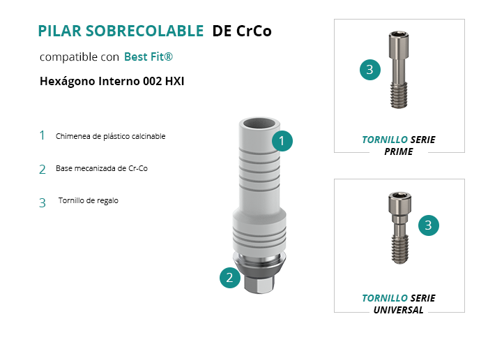 Pilar Sobrecolable de CrCo compatible con Best Fit® Hexágono Interno 002 HXI